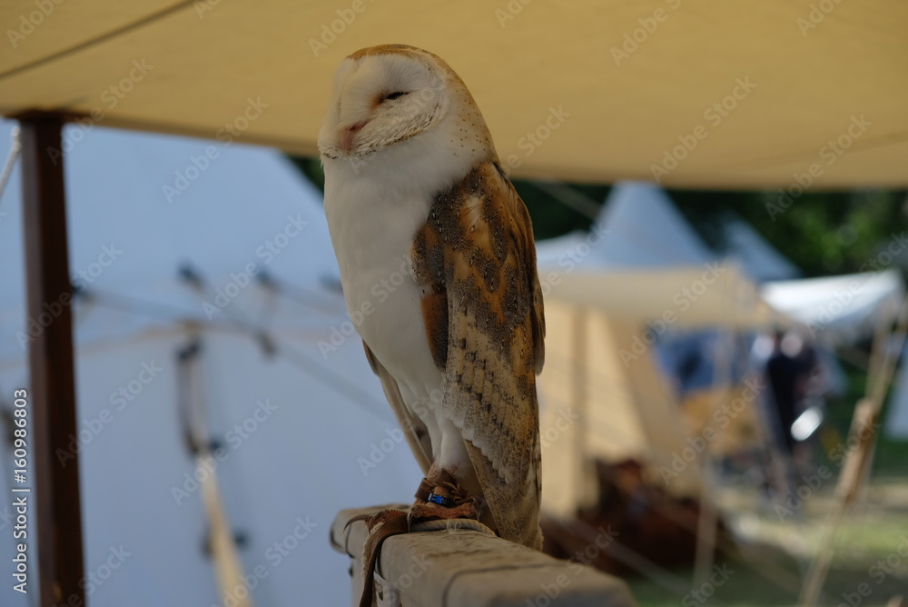 Fotografia Barbagianni Ammaestrato Su Un Trespolo Su
